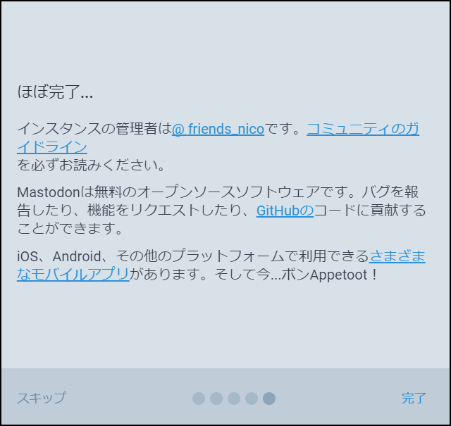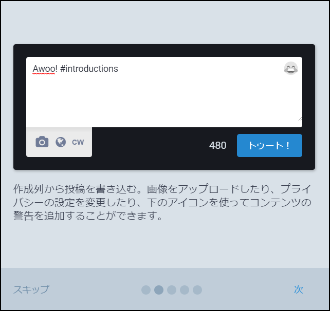 トゥートの使い方だね。確認したら『次へ』をクリックしよう。良く分からない!という人は以下の記事も参考にして欲しい。