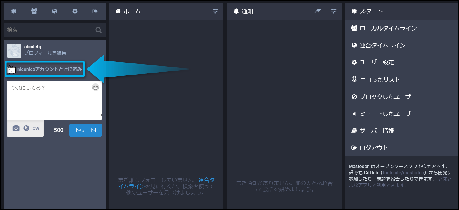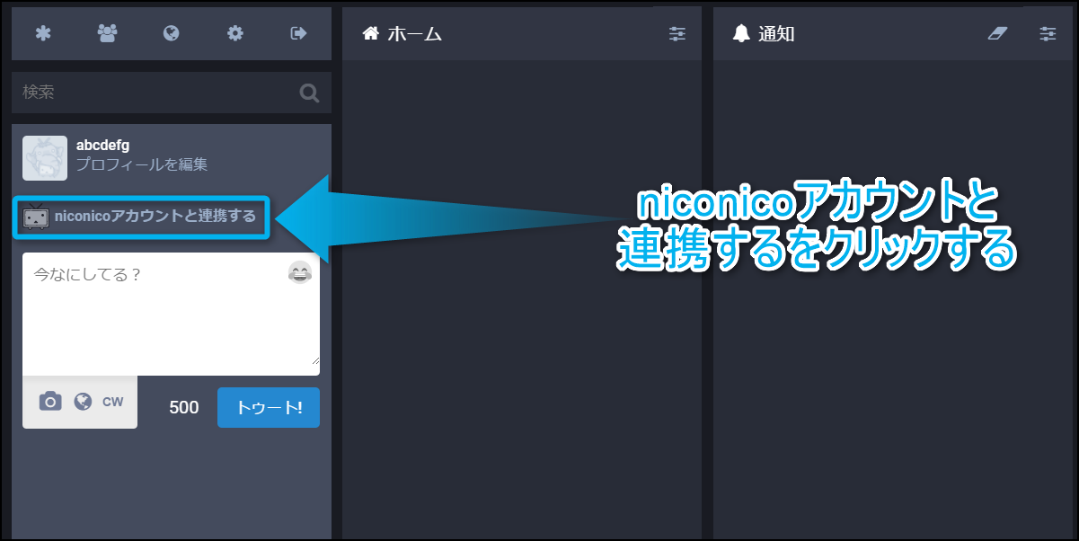 一応トゥート画面の真上に『niconicoアカウントと連携済み』と表示されているか確認しておこう。