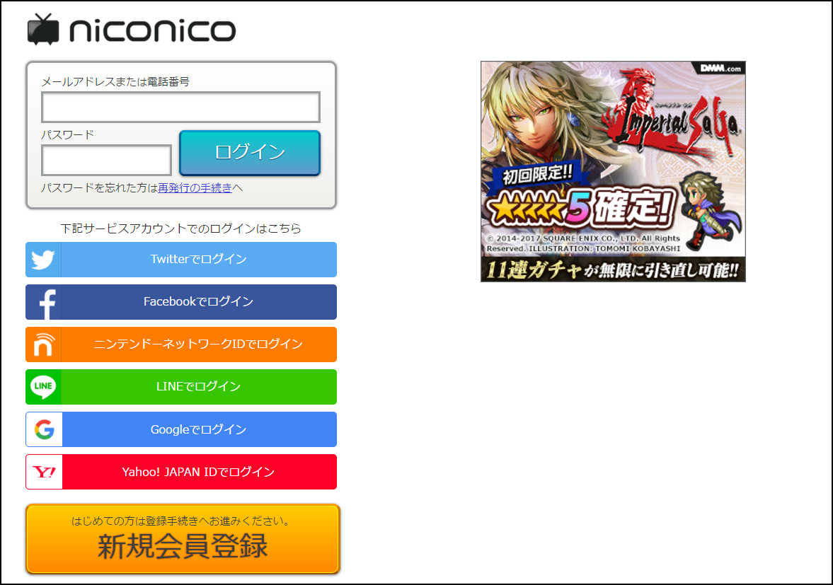 すると、niconicoのログインページに移動する。