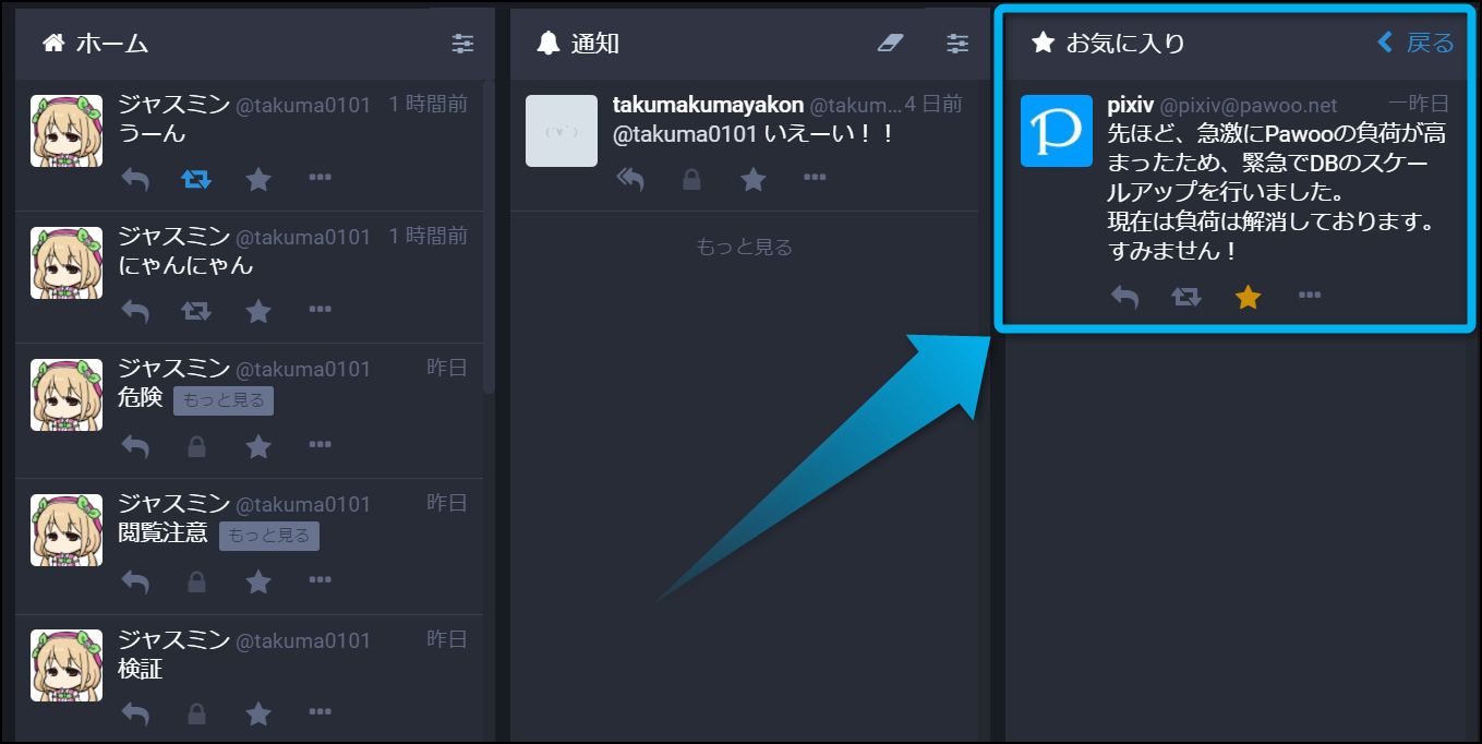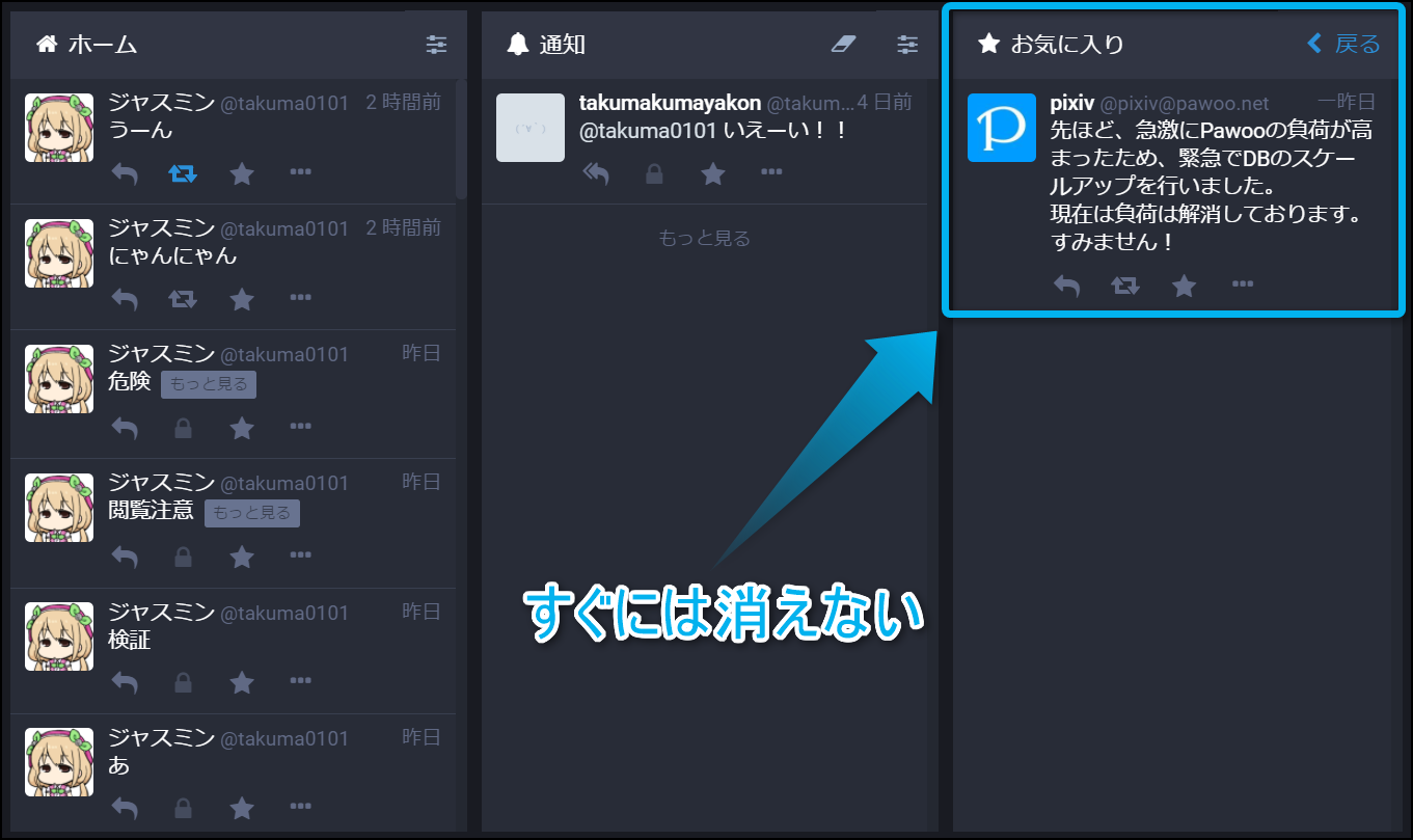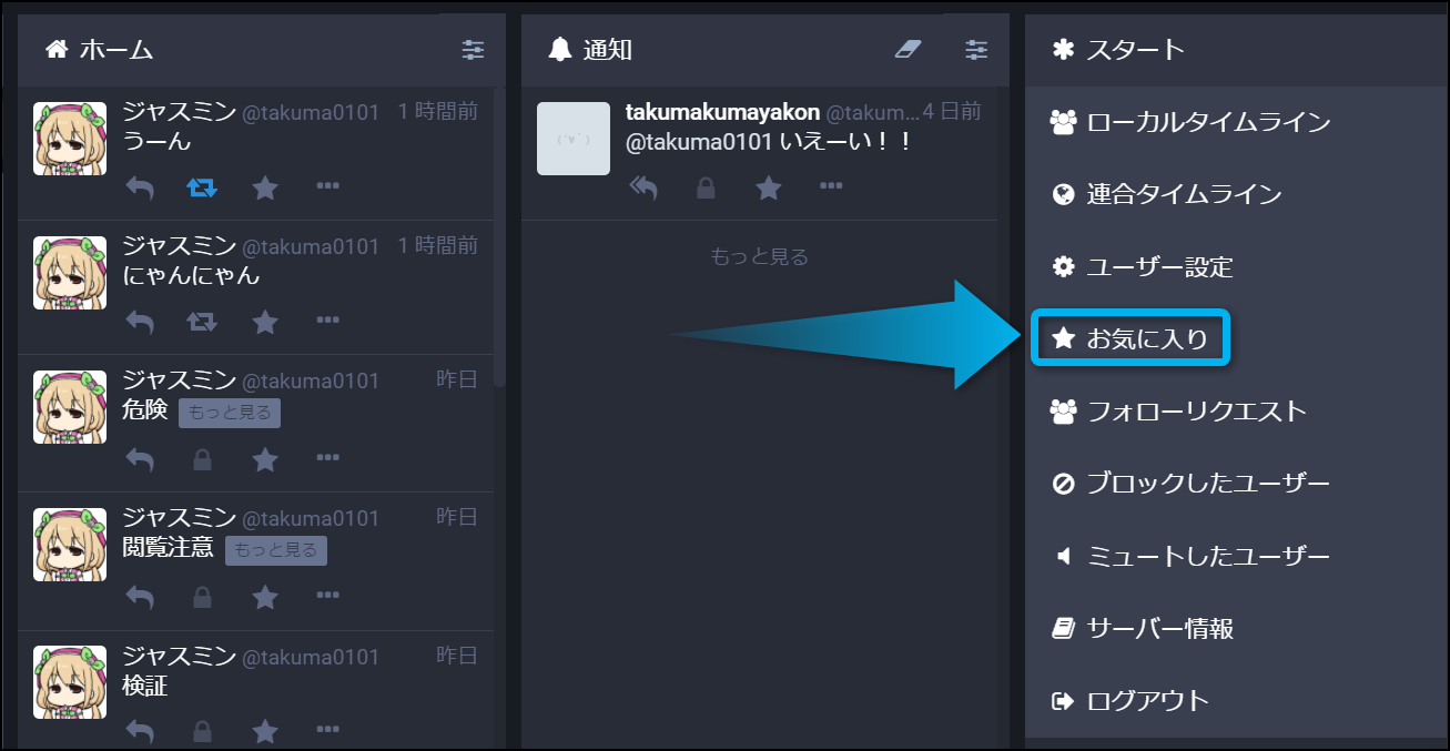 続いて、お気に入り登録したトゥートを削除する方法を紹介していくね。