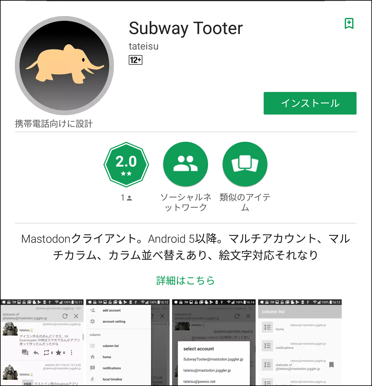 Mastodonの登録が完了したら、Subway Tooterのアプリをインストールしていこう。