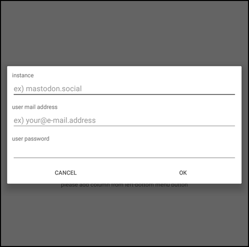 - instance:ログインしたいインスタンスのドメイン名を入力する。