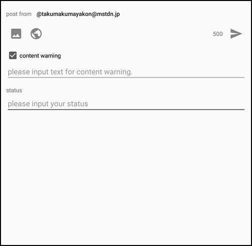 ペンのアイコンをタップしたら『please input your status』の部分にトゥートしたい内容を入力しよう。