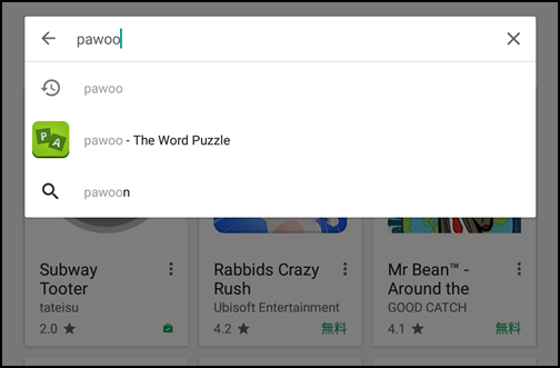 Androidのスマホやタブレットを使い『Playストア』のアプリを起動させて『pawoo』と入力して検索してみよう。