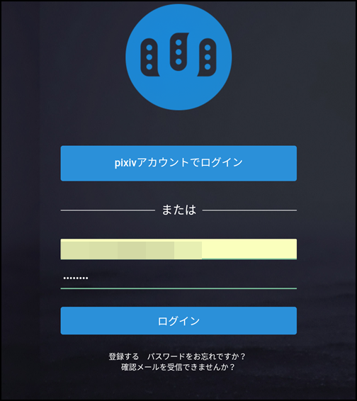 タップしてログイン画面に進んだら、メールアドレスとパスワードを入力してから『ログイン』をタップして欲しい。インスタンスがpawoo.netであれば、ピクシブのアカウントでログインすることも出来るよ。