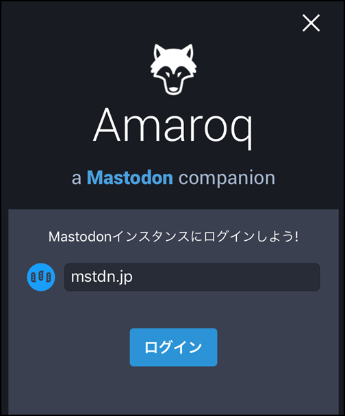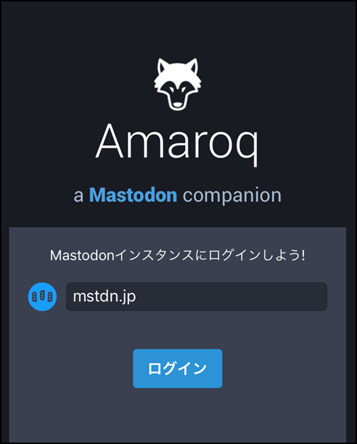 すると、起動して最初に表示されるインスタンスを入力する画面が表示されるから、ここに追加したいインスタンス(ドメイン名)を入力して欲しい。