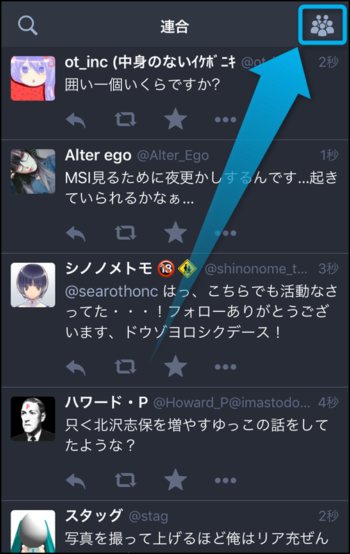 左上にある『虫眼鏡のアイコン』をタップするとユーザー検索の画面が開けるのも以前のバージョンと何も変わらない。