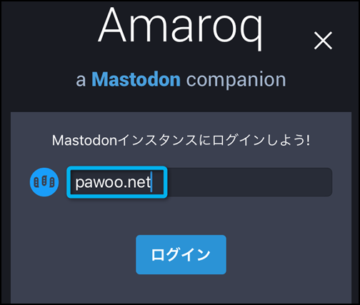 今回は『pawoo.net』と入力する。入力が終わったら『ログイン』をタップしよう。