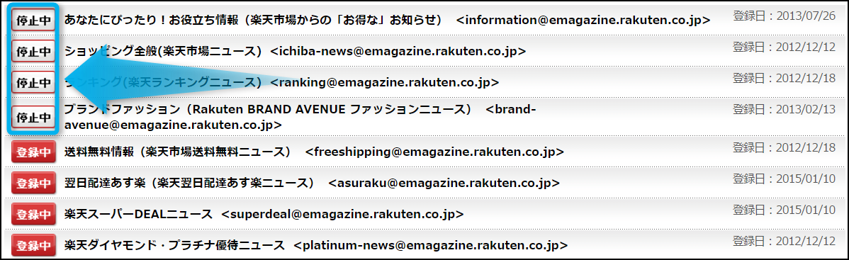 楽天ショップのメルマガを停止する方法