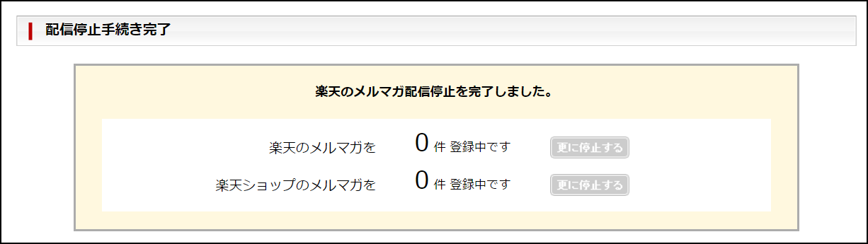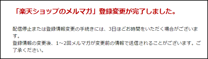 楽天のメルマガ配信停止を完了しました。というメッセージ画面が表示されたら完了だね。