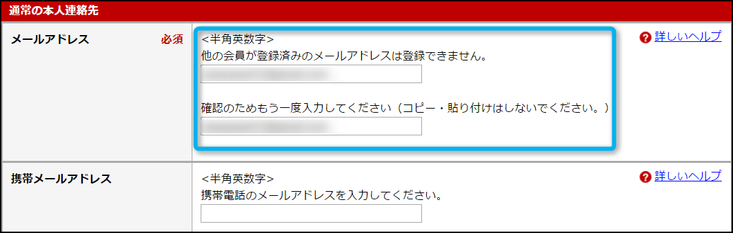 クリックしたら、通常の本人連絡先の項目にある『メールアドレス』の部分を書き換えよう。