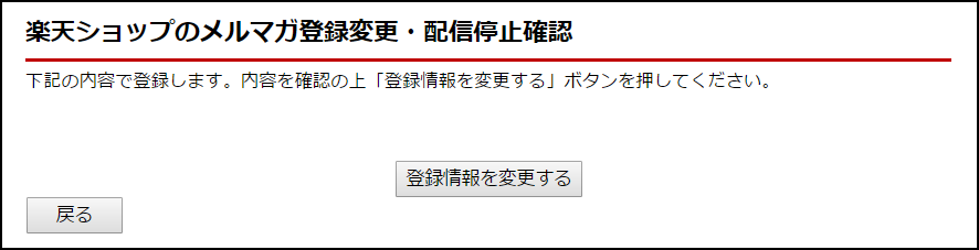 楽天ショップのメルマガ登録変更・配信停止確認のページに移動したら『登録情報を変更する』をクリックして欲しい。
