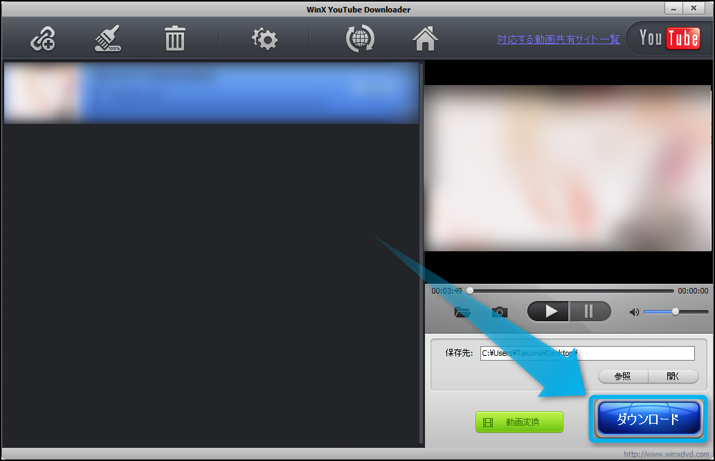 使い方はWinX YouTube Downaloderとほぼ同じだね。